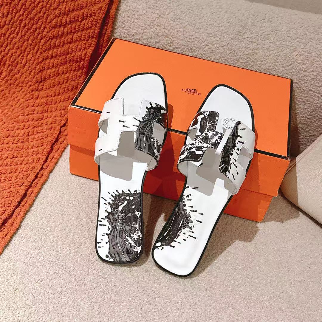 0RAN SANDAL IN BLACK MIX WHITE CALFSKIN