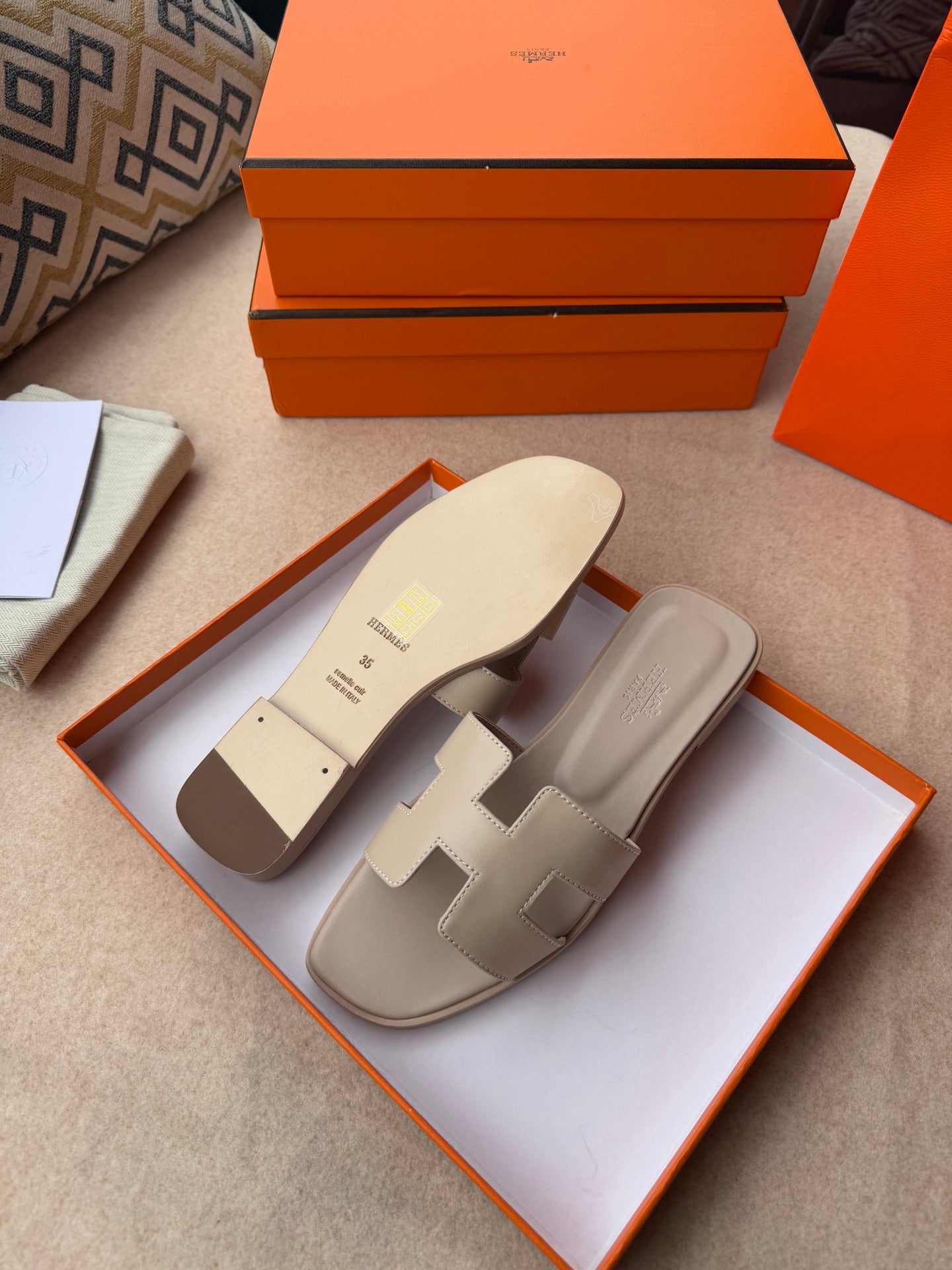 0RAN SANDALS IN KHAKI BROWN CALFSKIN
