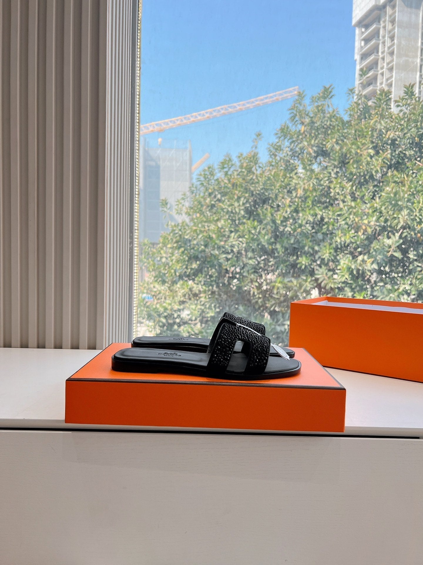 0RAN SLIDE IN BLACK CALFSKIN WITH CRYSTALS