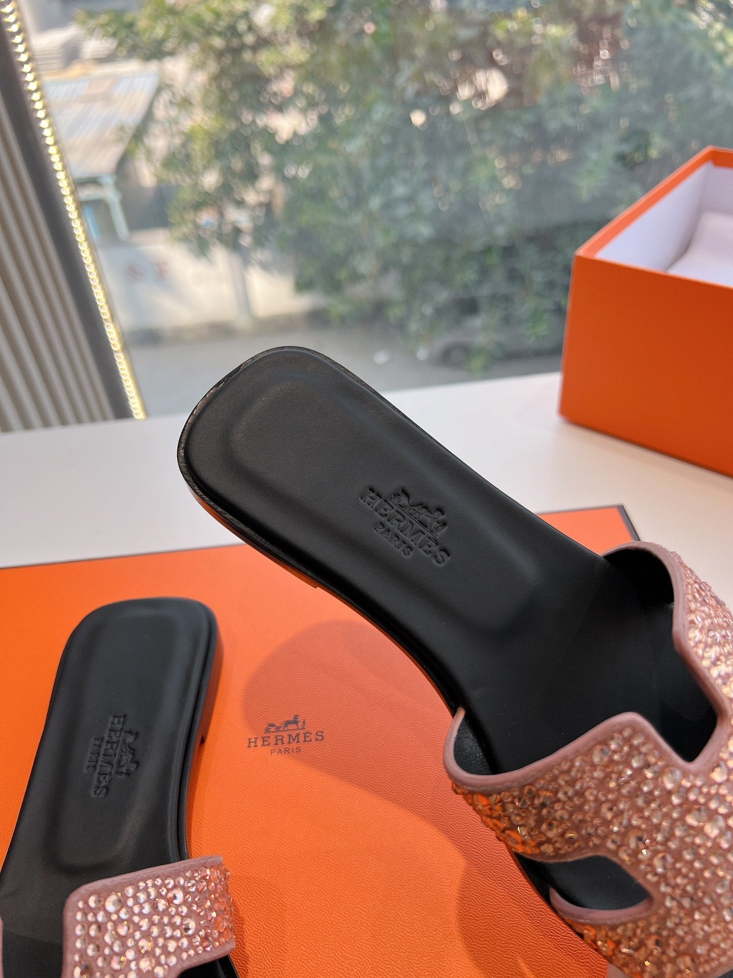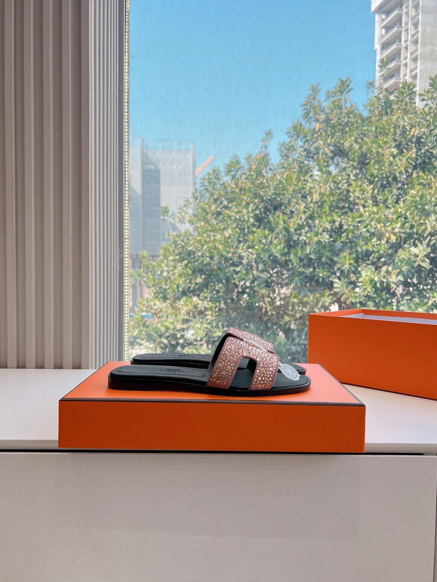 0RAN SLIDE IN PENNY BROWN CALFSKIN WITH CRYSTALS